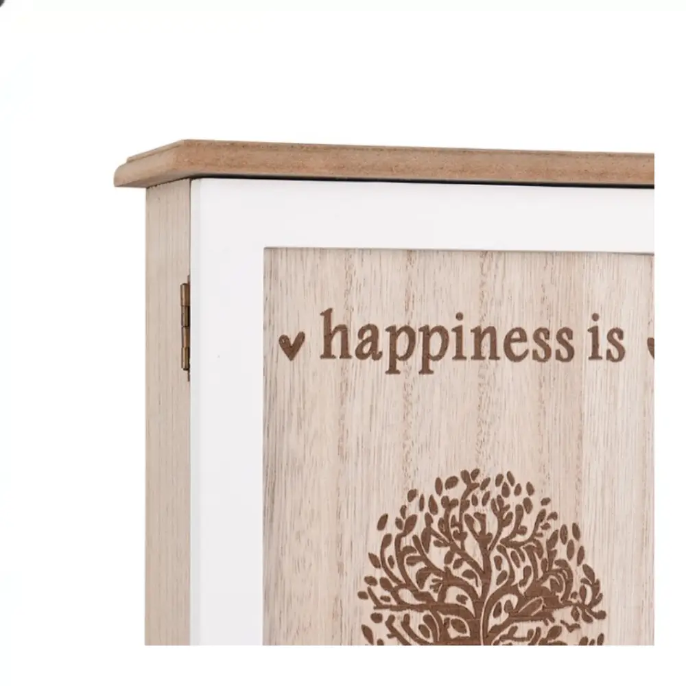 Sandra avainkaappi tarjoaa helpon tavan pitää avaimet järjestyksessä ja poissa näkyviltä, tuoden samalla harmonista ilmettä eteiseen tai muuhun tilaan. Sen raikas valkoinen ja luonnonvärinen puuyhdistelmä sopii monenlaiseen sisustukseen.