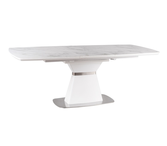 MDF-kansi keraamisella pinnalla yhdistettynä harjattuun teräsjalustaan takaa erinomaisen tukevuuden ja pitkäikäisen laadun, kokonaispainon noustessa 101 kiloon. Pöydän mitat 160 × 90 cm – ja jatkettuna 210 × 90 cm – tekevät siitä täydellisen valinnan keskikokoisiin ruokailutiloihin.