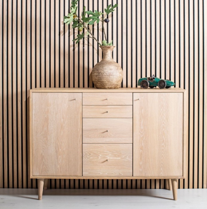 Scandi senkki on upea öljytystä tammesta valmistettu säilytyskaluste, joka tuo kotiin rauhallista ja viimeisteltyä skandinaavista ilmettä. Selkeälinjainen muotoilu ja luonnollinen puupinta tekevät senkistä helposti yhdistettävän sekä moderniin että klassiseen sisustukseen.