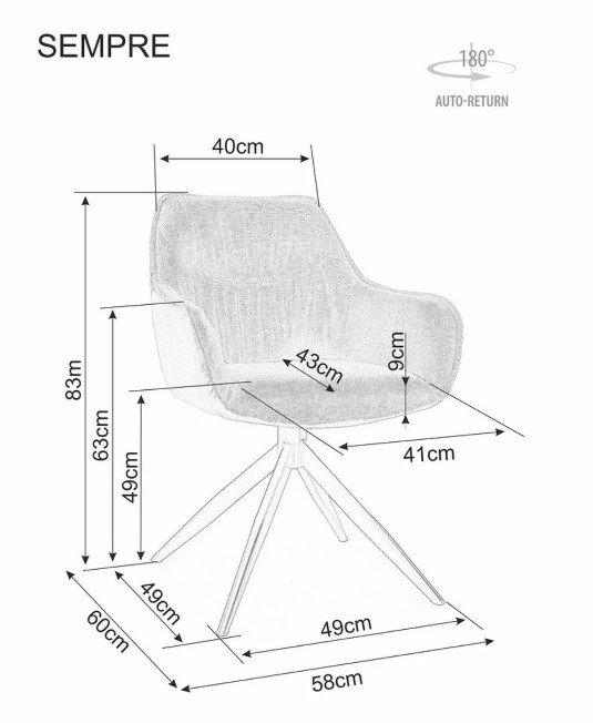 Tuolin 180 astetta kääntyvä mekanismi palauttaa istuimen automaattisesti oikeaan asentoon, mikä tekee siitä erinomaisen valinnan aktiivisiin ruokailutiloihin. Mekanismin sulava toiminta lisää käyttömukavuutta ja tekee arjesta vaivattomampaa.