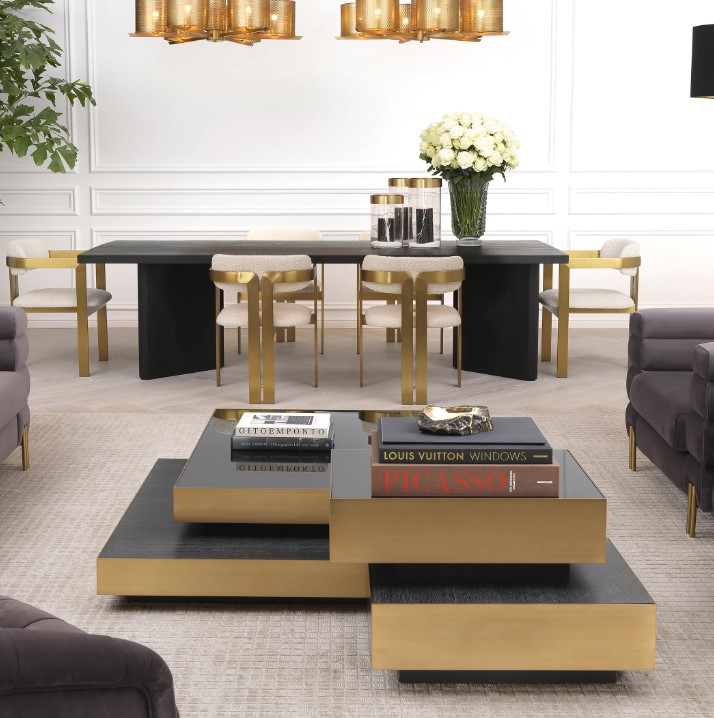 Shelton-sohvapöytä yhdistää modernin ylellisyyden, käytännöllisen monitasorakenteen ja laadukkaat materiaalit. Se tarjoaa tilaan sekä näyttävyyttä että arjen toimivuutta, tehden olohuoneestasi entistä harmonisemman ja tyylikkäämmän.