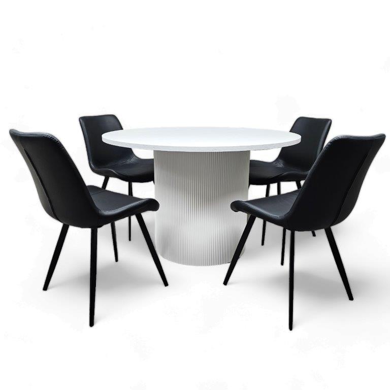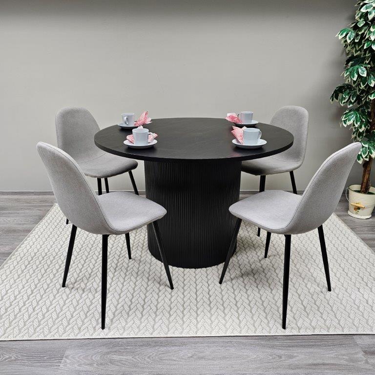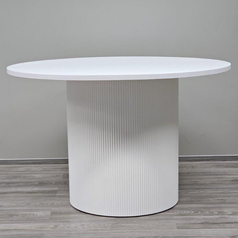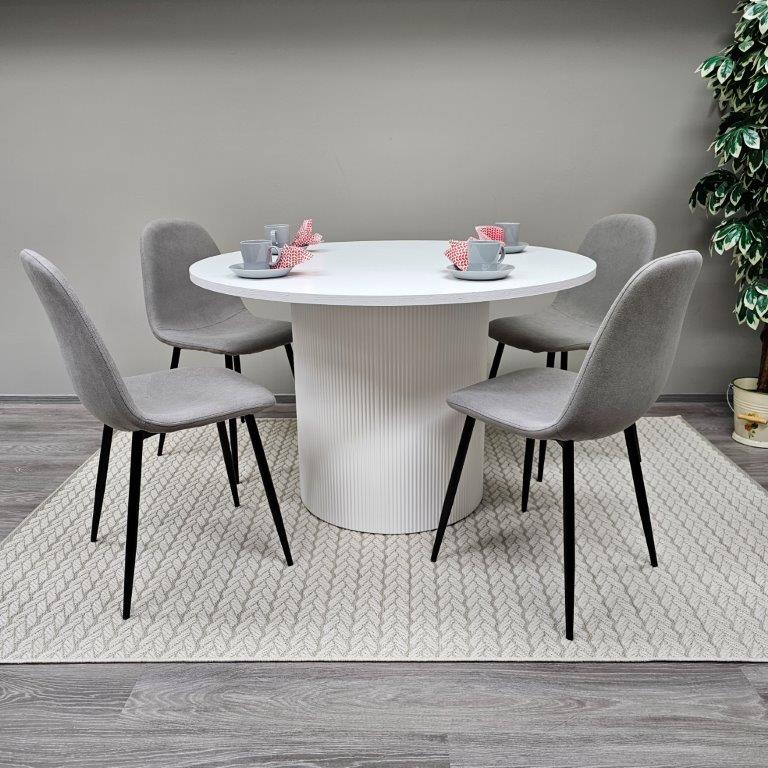 Siera-pyöreä pöytä on upea yhdistelmä modernia designia ja ajattoman tyylikästä estetiikkaa. Sen tukeva MDF-kansi ja jalkaosan kaunis, yksilöllinen rimakuviointi tekevät pöydästä näyttävän keskipisteen ruokailutilaan. Pyöreä muoto kutsuu seurusteluun ja luo ympärilleen lämpimän, yhteisöllisen tunnelman.