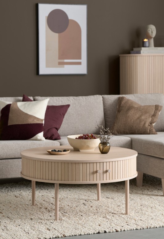 Slide-sarjan pyöreä sohvapöytä on täydellinen yhdistelmä modernia muotoilua ja toimivuutta. Liukuvat rimaovet tarjoavat kätevän säilytysratkaisun, joka pitää olohuoneesi siistinä ja tyylikkäänä. Kestävä tammirakenne korostaa pöydän luonnollista eleganssia, ja sen ajaton design sopii saumattomasti monenlaisiin sisustuksiin.