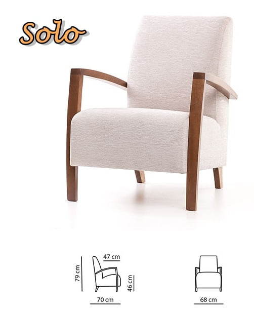 Solo-nojatuoli on perinteisen kaunis ja sirolinjainen valinta, joka istuu vaivattomasti niin pienempiin kuin suurempiinkin tiloihin. Matalaselkäinen rakenne tuo keveyttä kokonaisuuteen, ja korkeat jalat lisäävät ilmavuutta. Napakka ja miellyttävä istuin takaa hyvän tuen, ja ryhdikkään selkänojan ansiosta Solo-nojatuolissa viihtyy pidempäänkin.