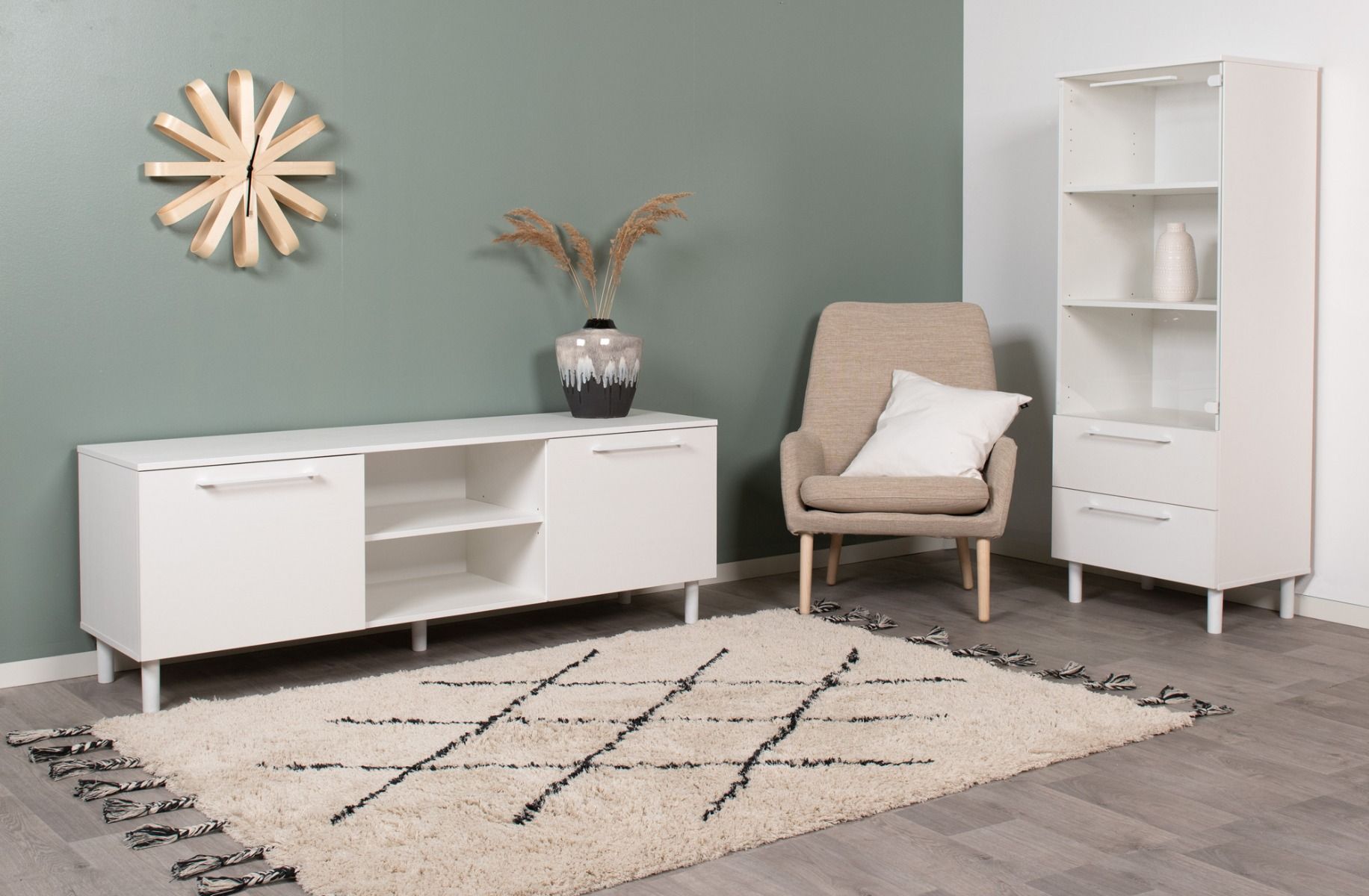Kolmen oven taakse kätkeytyvä hyllytila tarjoaa reilusti tilaa viihdelaitteille, johtosarjoille ja muille tarvikkeille, pitäen olohuoneesi siistinä ja järjestyksessä. Toimiva ja esteettinen rakenne tekee käytöstä miellyttävää ja helppoa. Yhdistele Solo-sarjan muita tuotteita, kuten vitriiniä, senkkiä tai sohvapöytää, ja luo kotiisi yhtenäinen ja harmoninen sisustuskokonaisuus, jossa tyyli ja toimivuus kohtaavat.