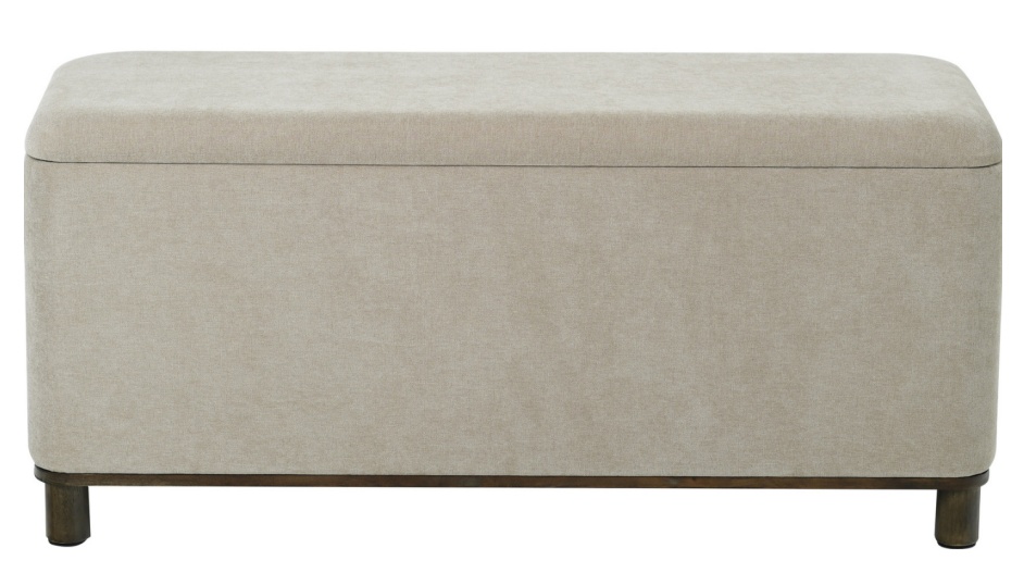 Soma penkki tarjoaa tyylikkään säilytysratkaisun ja toimii monipuolisena sisustuselementtinä. Penkissä kaunis kangasverhoilu sekä ruskeat puujalat. Kauniisti muotoiltu penkki tuo kotiin sekä käytännöllisyyttä että pehmeää eleganssia.