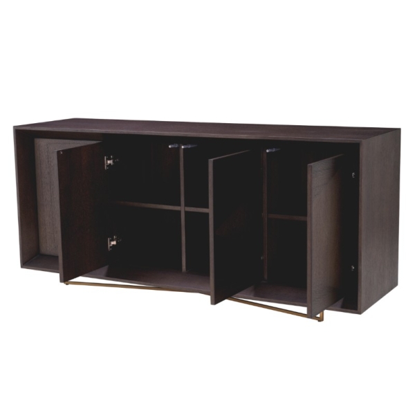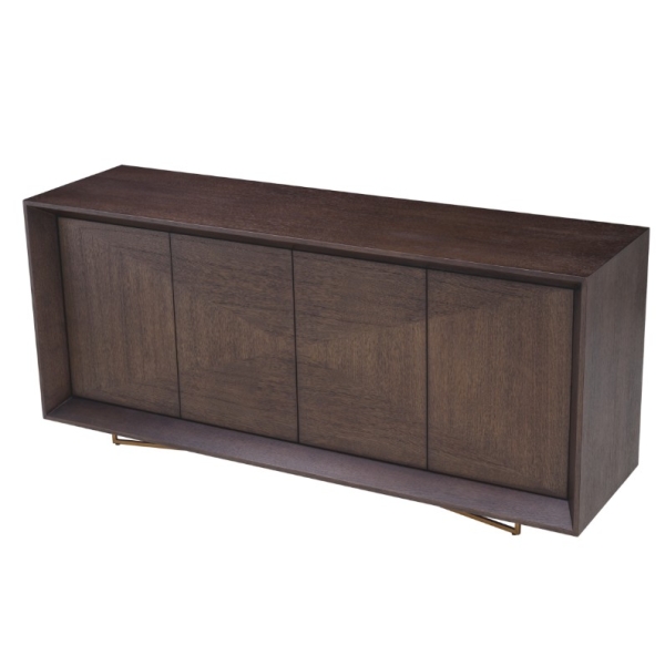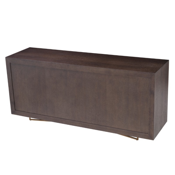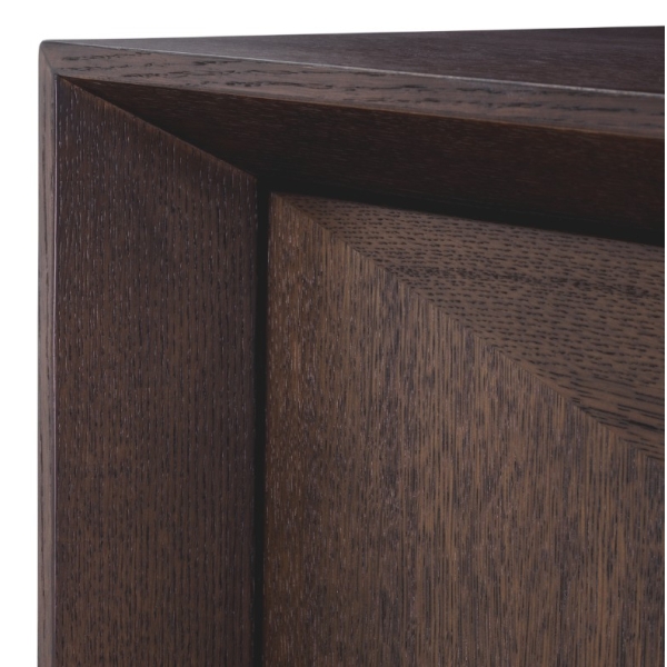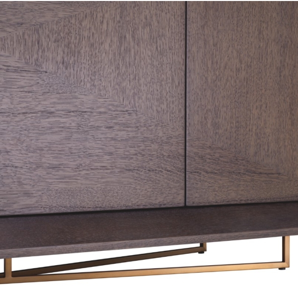 Sonesta on ylellinen tammiviilulla viimeistelty senkki, jossa yhdistyvät hienostunut viilukuvio ja harjattu messinki tyylikkääksi kokonaisuudeksi. Tämä elegantti ja käytännöllinen säilytyskaluste on täydellinen valinta moderniin ja ylelliseen tilaan.