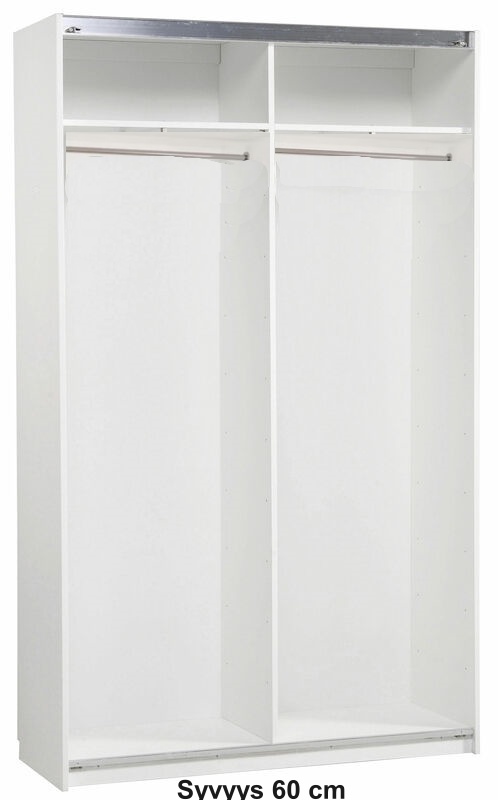 - Stina liukuovikaappi 2 liukuovella on laadukas kotimainen tuote. Vaatekaapit toimitetaan siten että liukuovikomerossa on keskellä 1 väliseinä ja 2 henkaritankoa ja kaksi irtohyllyä joiden sijainnin voit itse päättää kasausvaiheessa. Vaatetankot kiinnitetään syvyyssuunnassa.