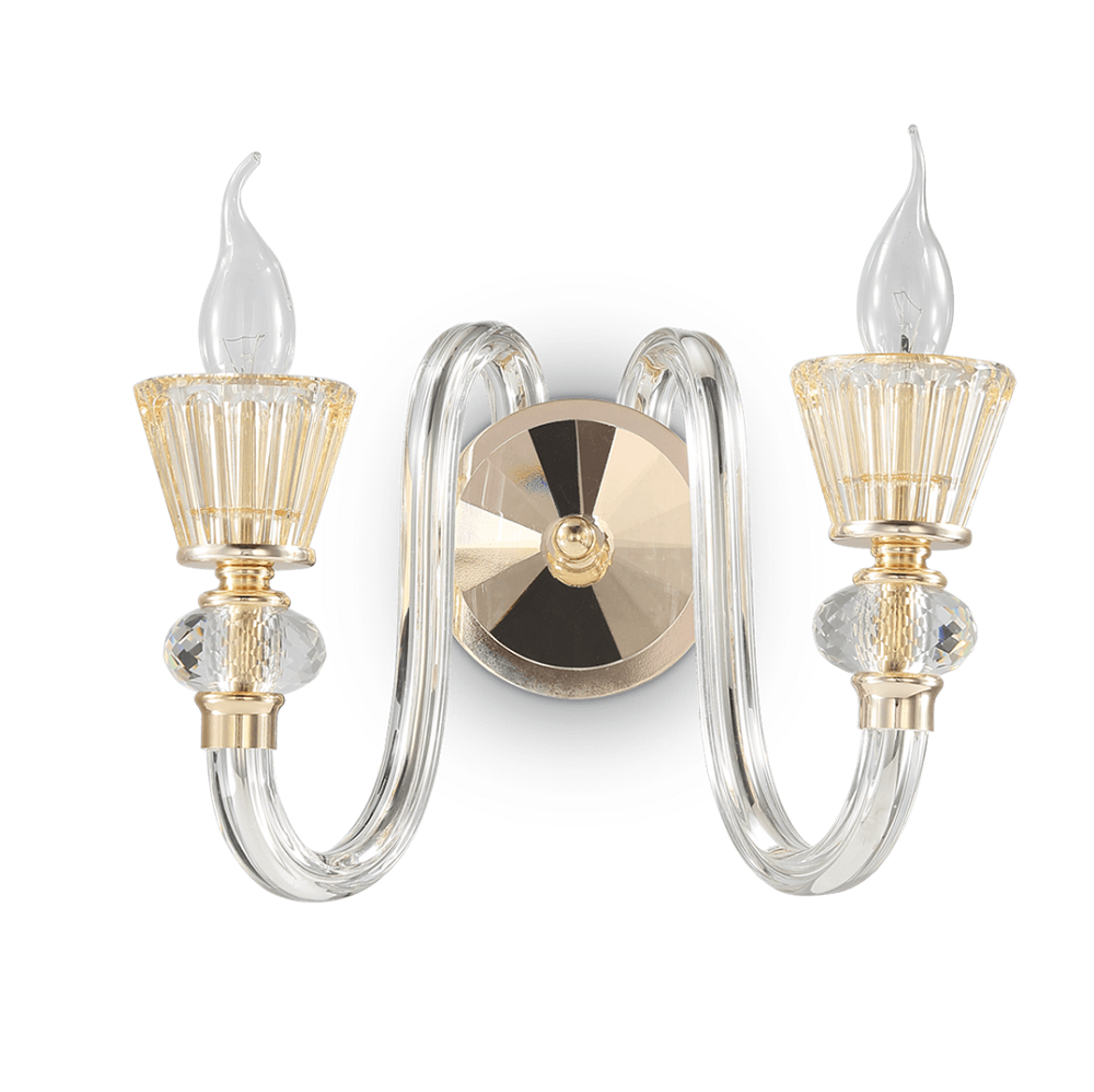 Lasiosat ja kristalliyksityiskohdat suodattavat ja heijastavat valoa kauniisti, luoden tilaan lämpimän ja kutsuvan tunnelman. Kaksi E14-kantaa mahdollistavat valaistuksen säätelyn polttimovalinnoilla, jolloin kokonaisuus voidaan sovittaa joko tunnelmalliseksi korostusvaloksi tai osaksi laajempaa valaistusta.