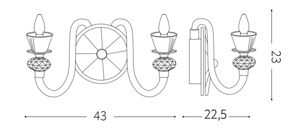 | 43 cm | 22.5 cm | 23 cm | cm | cm | cm | cm | cm | cm | cm | cm | cm | cm | cm | cm | cm | cm | cm | cm | cm | cm | cm | cm | cm | cm | cm | cm | cm | Kulta | cm | Tilaustuote | 2 kg | cm | cm | cm | Lasi, Metalli | IP20, Polttimo: E14, polttimoiden määrä 2 kpl, Polttimot eivät sisälly hintaan, Teho: 40W, Seinäkiinnitys |