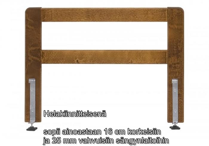 Saatavilla kauniissa Talvitien puuväreissä, nousutuki sopii täydellisesti moniin sänky- ja sisustusmalleihin. Helakiinnitteinen malli soveltuu erityisesti 16 cm korkeisiin ja 25 mm vahvuisiin laitoihin, kuten Dreams-, Laatu Laveri-, Peggy-, Susanna- ja Sonaatti-sänkyihin.