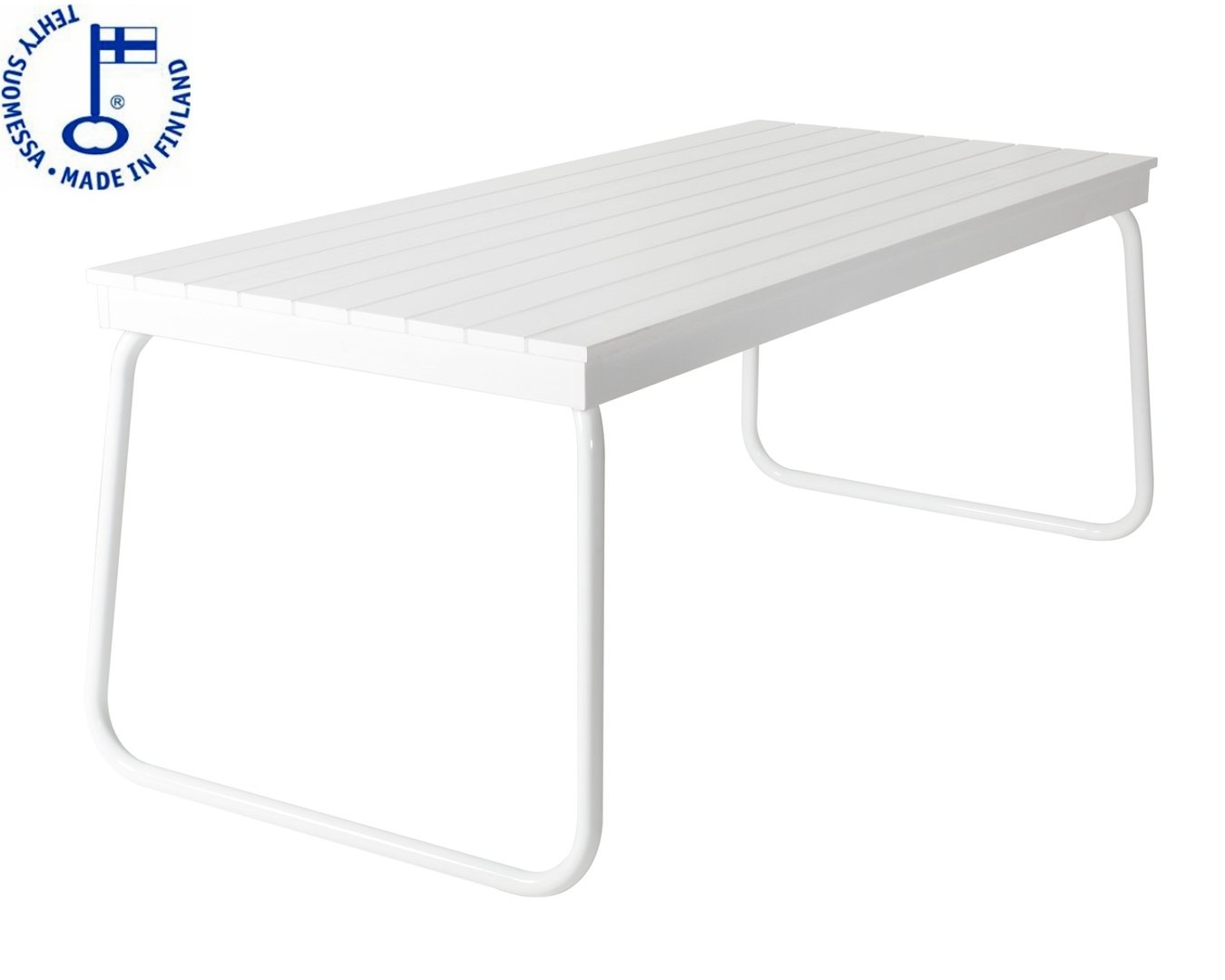 Suvi-pöytä on tyylikäs ja laadukas klassikkotuote joka tuo pihamaallesi tuulahduksen ajatonta tyyliä. Pöydän pinta on valmistettu korkealaatuisesta männystä ja maalattu valkoiseksi. Puuosien puunsyyt on nostettu esiin hiomalla mikä antaa puunpinnalle erittäin kauniin ja arvokkaan näköisen ulkonäön. Pöydän runko on valmistettu pulverimaalatusta teräsputkesta mikä on maalattu valkoiseksi. Pöytä on taattua suomalaista laatua ja myös kotimainen Avainlippu-tuote.