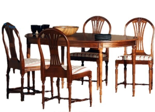 Ruokailuryhmä sisältää jatkettavan ruokapöydän sekä neljä verhoiltua Tähkäempire-tuolia, jotka tuovat kotiin klassista eleganssia. Lisätuoleja ja käsinojallisia tuoleja voi tilata erikseen, jolloin ryhmän voi laajentaa juuri tarpeiden mukaan. (Miljöökuvissa esillä Hepplewhite-tuolit.)