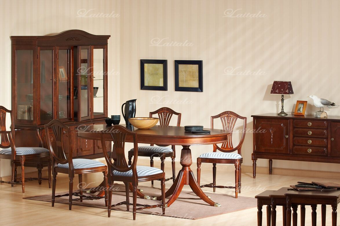 Kotimainen tähkäempire jatkettava ruokapöytä kahdella jatkopalalla ja tukevilla pylväsjaloilla yhdistää klassisen empiretyylin ja käytännöllisyyden. Saatavana useissa väreissä sekä käsin maalatulla kulta- tai harmaapatinoinnilla. Toimitetaan valmiiksi koottuna.