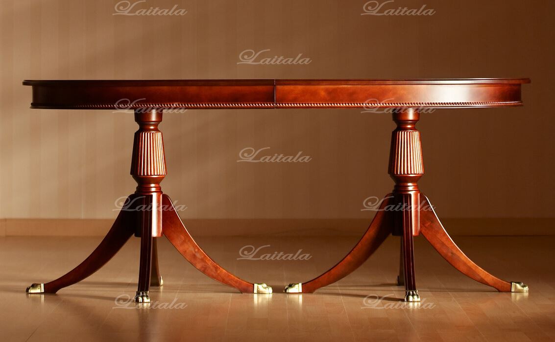 Tämä näyttävä tähkäempire-ruokapöytä huokuu klassista eleganssia ja käytännöllisyyttä. Kahden jatkopalan ansiosta pöytä tarjoaa runsaasti tilaa niin arjen aterioille kuin juhlaville illallisille, ja kahden pylväsjalan ansiosta kokonaisuus on erityisen tukeva ja arvokkaan näköinen.