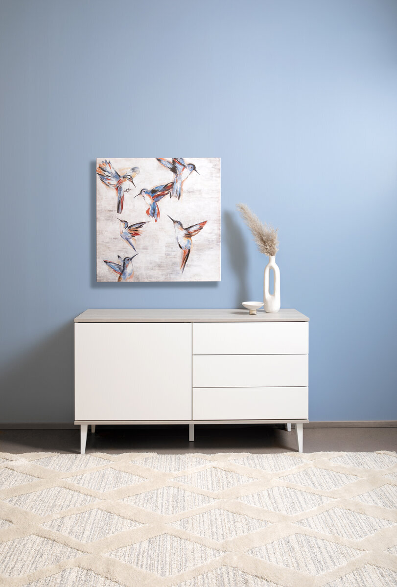 Kolme kaappia push-to-open ponnahdusmekanismilla tarjoavat helppokäyttöisen ja vetimettömän säilytysratkaisun, joka pitää ilmeen minimalistisena ja siistinä. Valmistettu kestävästä 18 mm kalustelevystä ja maalatusta massiivipuusta, mikä takaa tuotteen pitkäikäisyyden, tukevuuden ja suomalaisen laatutyön tunnun jokaisessa yksityiskohdassa.