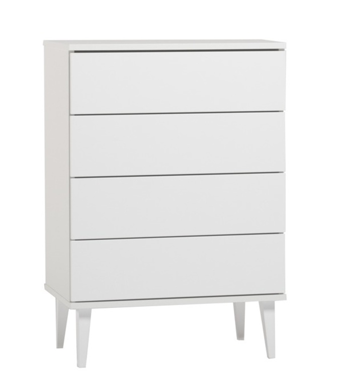 Laatikot ja ovet avautuvat kevyesti ilman vetimiä, mikä korostaa lipaston minimalistista ja yhtenäistä ilmettä. Mekanismi tekee käytöstä sulavaa ja miellyttävää joka päivä. Runko on valmistettu tukevasta 18 mm kalustelevystä ja jalat maalatusta massiivipuusta, mikä takaa lipaston pitkäikäisyyden ja vakauden. Rakenteen huolellinen viimeistely heijastaa kotimaista laatua.