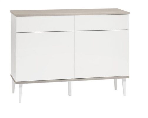 Vetimettömät laatikot ja ovet avautuvat kevyesti push-to-open ponnahdusmekanismilla, joka tekee käytöstä helppoa ja lisää kalusteen sulavaa, yhtenäistä ulkonäköä. Senkki on valmistettu 18 mm paksusta kalustelevystä ja tukevista, maalatuista massiivipuisista jaloista, mikä varmistaa tuotteen pitkäikäisyyden ja vakauden. Laadukkaat materiaalit takaavat myös kestävän ja huolitellun viimeistelyn.