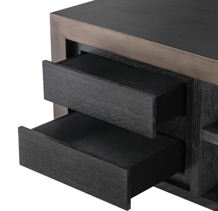 Talbot TV-taso yhdistää suoralinjaisen estetiikan ja tyylikkäät teräsreunukset, luoden modernin ja viimeistellyn ilmeen olohuoneeseesi. Sen harkittu muotokieli tekee siitä näyttävän, mutta helposti sisustukseen sulautuvan keskipisteen.