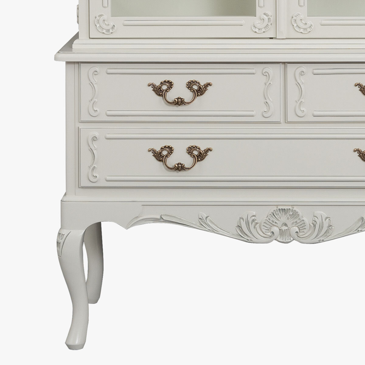 Kotimainen käsityö ja huolellinen viimeistely tekevät tästä kalusteesta erinomaisen laadukkaan ja pitkäikäisen. Saatavana useissa väreissä, ja lisäeleganssia tuo käsin maalattu kullan- tai harmaanvärinen patinointi, joka korostaa kauniita yksityiskohtia.