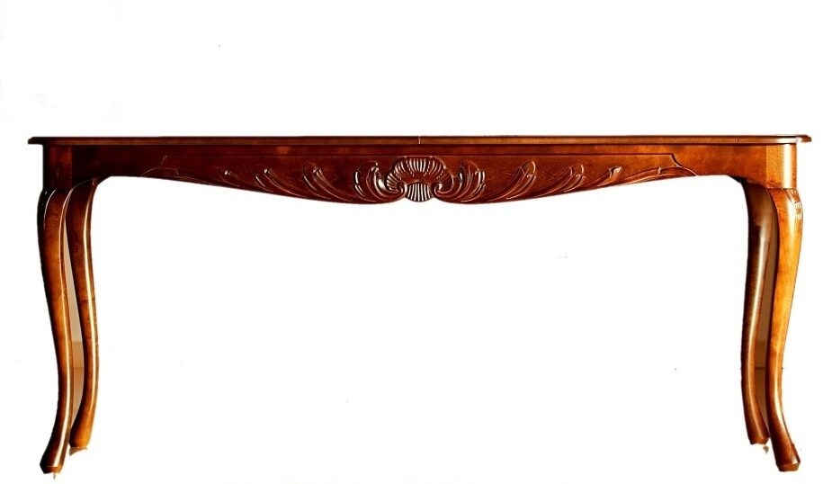 Tämä suorakaiteen muotoinen Talonpoikaisrokokoo-ruokapöytä yhdistää perinteisen muotoilun ja käytännöllisen jatkomekanismin. Kahden jatkopalan ansiosta pöytä tarjoaa runsaasti tilaa, ja sen ajaton muotoilu tekee siitä näyttävän keskipisteen niin perheen arkiruokailuissa kuin juhlallisissa illallisissa.