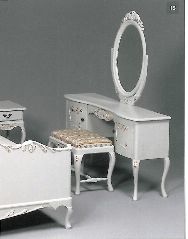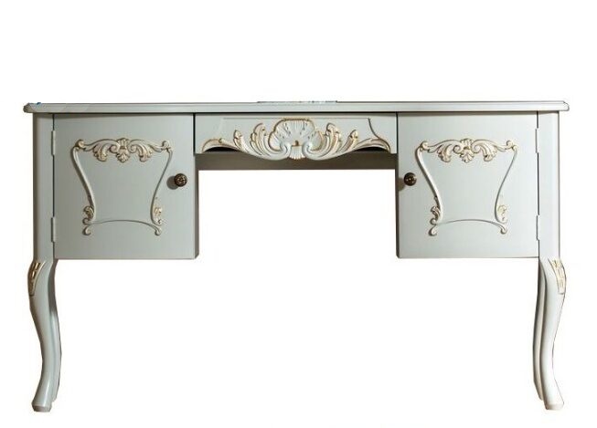Tämä lumoava Talonpoikaisrokokoo-kampauspöytä hurmaa kaarevilla jaloillaan ja perinteisellä muotoilullaan. Se sopii täydellisesti makuuhuoneeseen kampaus- tai kirjoituspöydäksi ja tarjoaa käytännöllisen tilan tuolille tai rahille.
