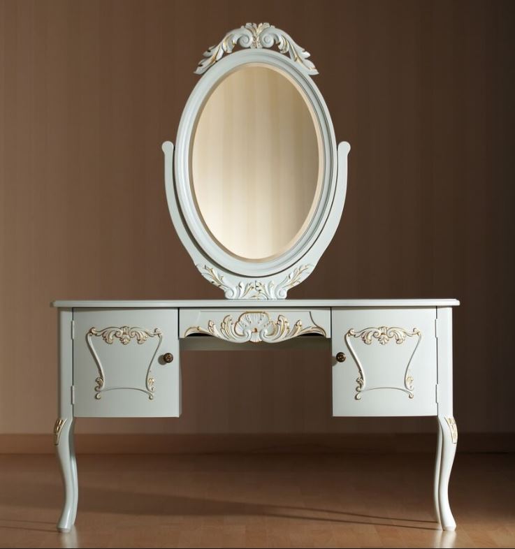 Kotimainen Talonpoikaisrokokoo kampauspöytä kahdella kaapilla – siro ja monikäyttöinen kaluste