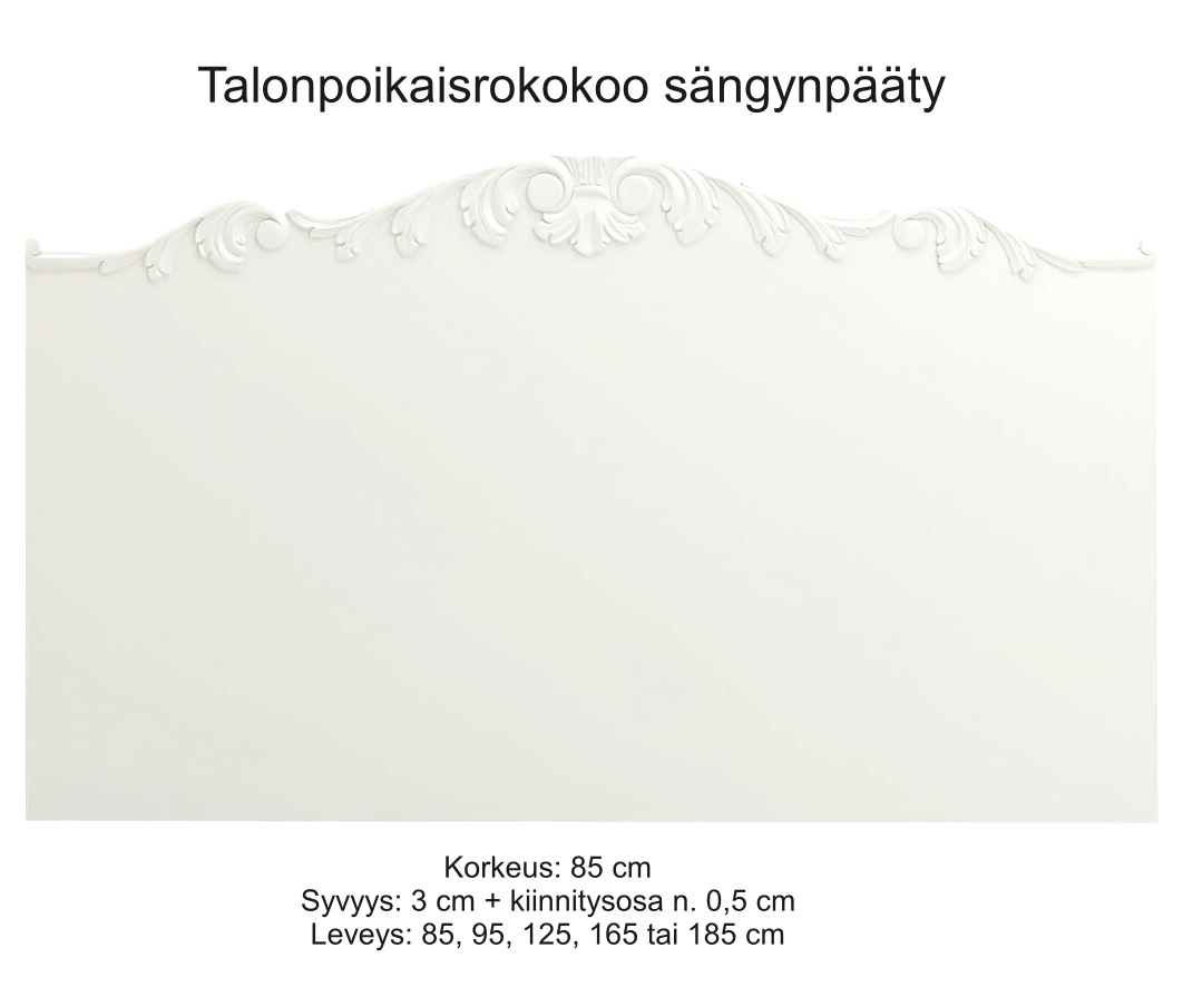 Talonpoikaisrokokoo-sängynpääty on valinta, kun haluat makuuhuoneeseen kotimaisen käsityön arvokkuutta, kestävää laatua ja ajattoman kauneuden yhdellä tuotteella.