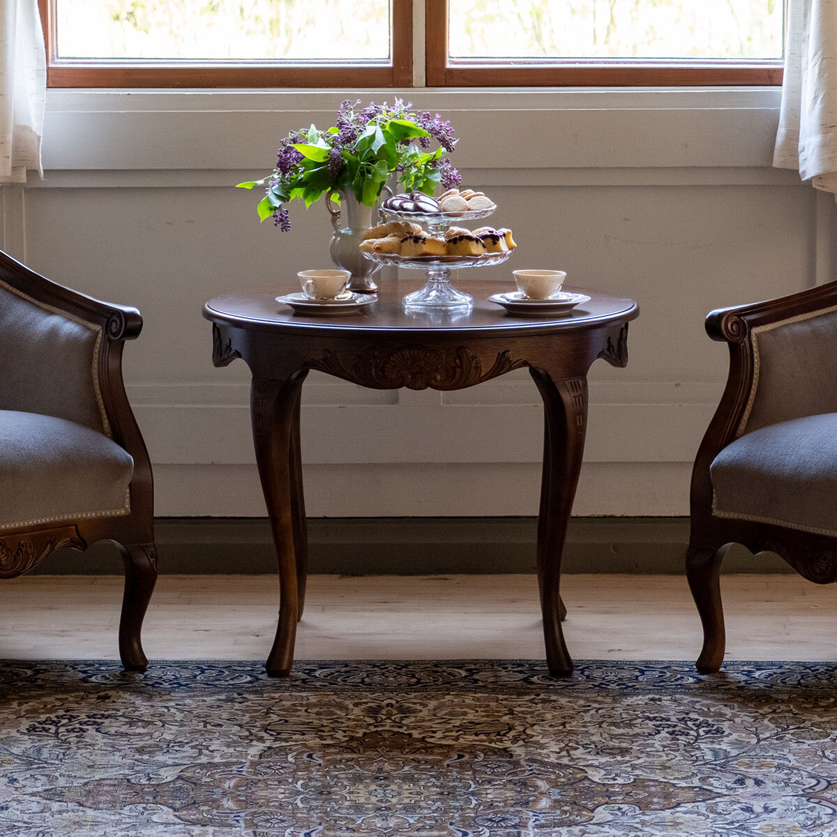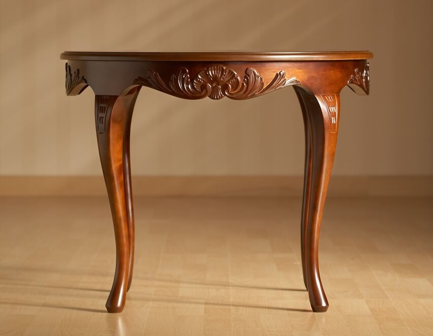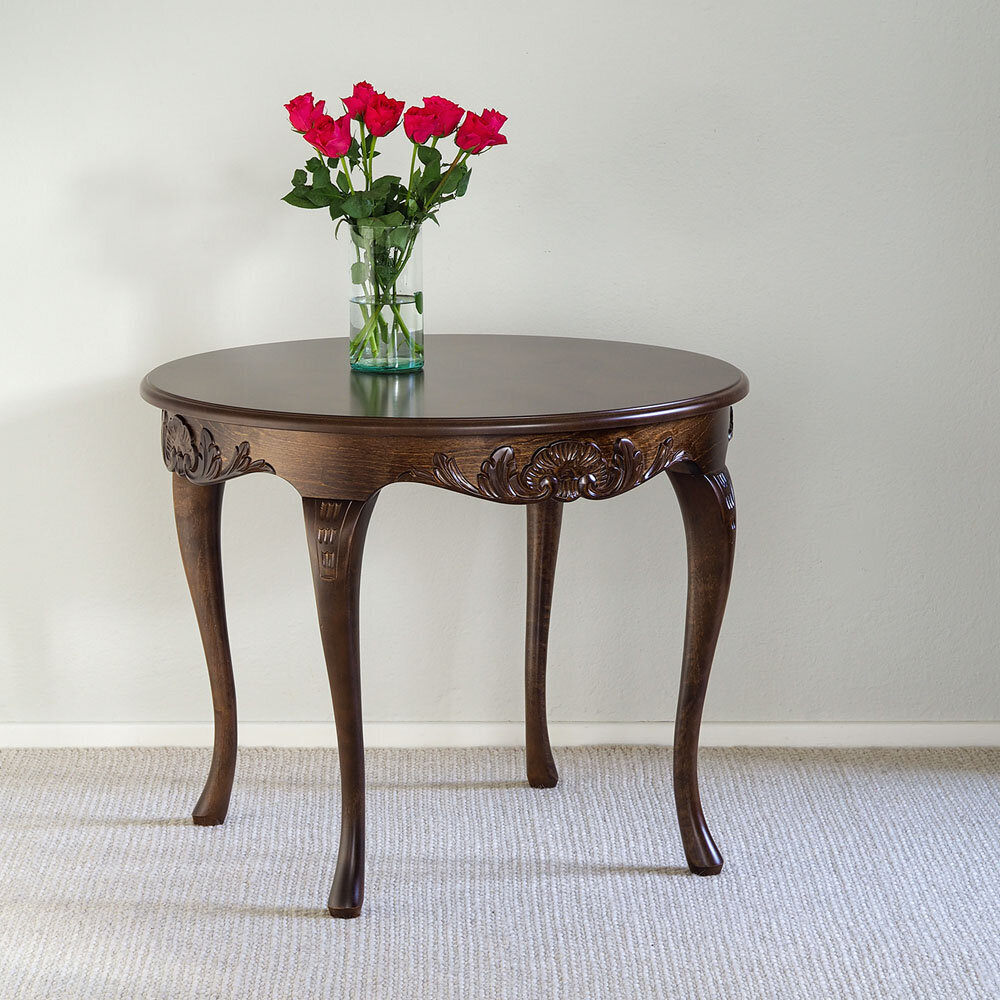 Kotimainen pyöreä Talonpoikaisrokokoo sohvapöytä – ajaton kaunotar olohuoneeseen