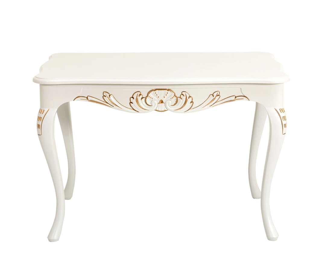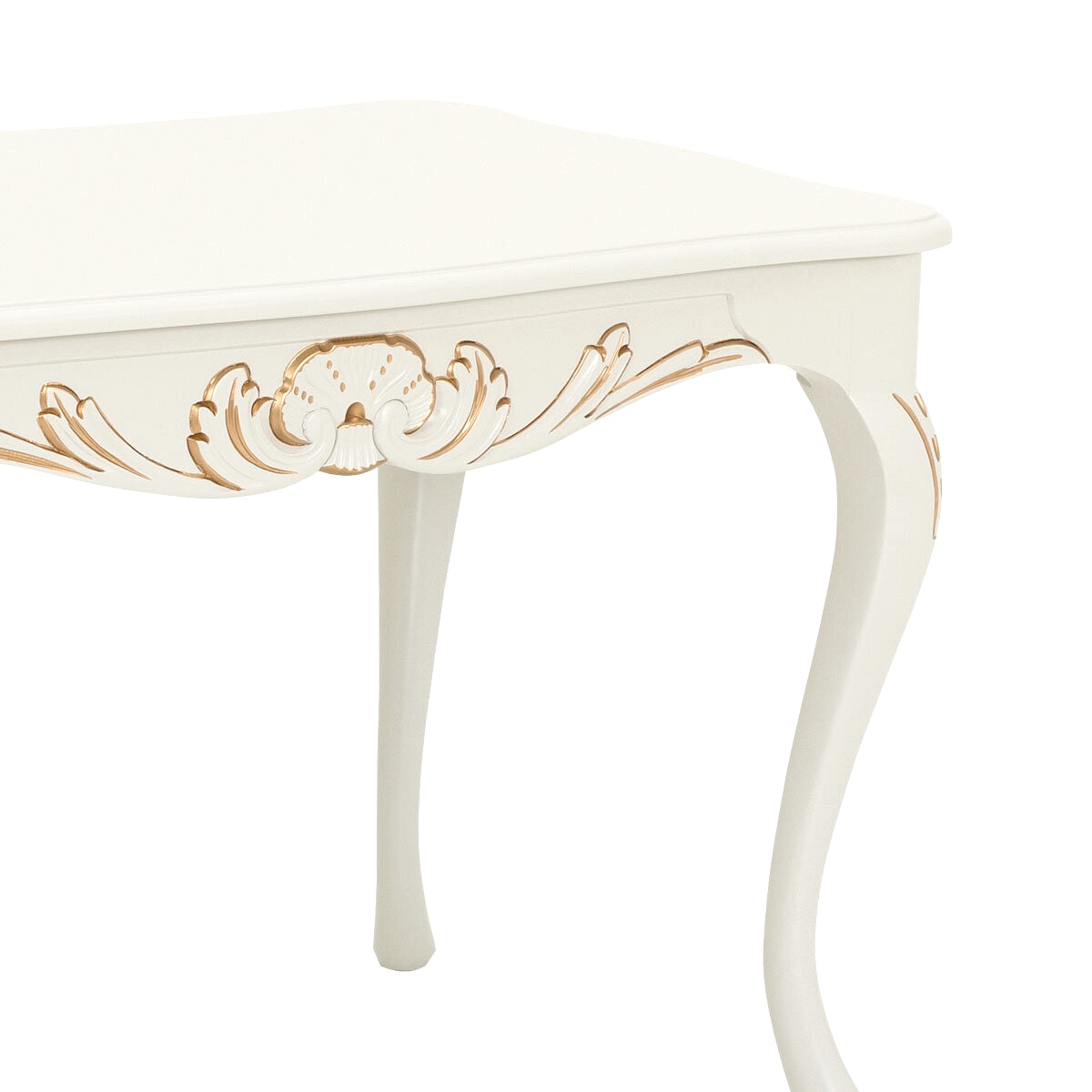 Laadukas kotimainen käsityö ja huolellinen viimeistely takaavat erinomaisen laadun. Pöytä on saatavana useissa väreissä, ja sen voi viimeistellä käsin maalatulla kullan- tai harmaanvärisellä patinoinnilla, joka korostaa kauniita yksityiskohtia.