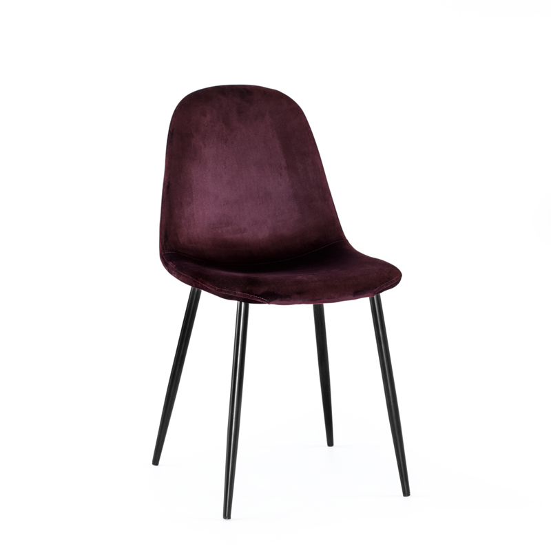 Tuolin istuinosa on verhoiltu pehmeällä ja näyttävällä samettikankaalla, joka lisää istumamukavuutta ja tuo tilaan hienostunutta tunnelmaa. Mustaksi maalatut metallijalat luovat modernin kontrastin ja varmistavat tukevan rakenteen arjen käyttöön. Saatavana kahdessa tyylikkäässä värissä: viininpunainen ja tummansininen.