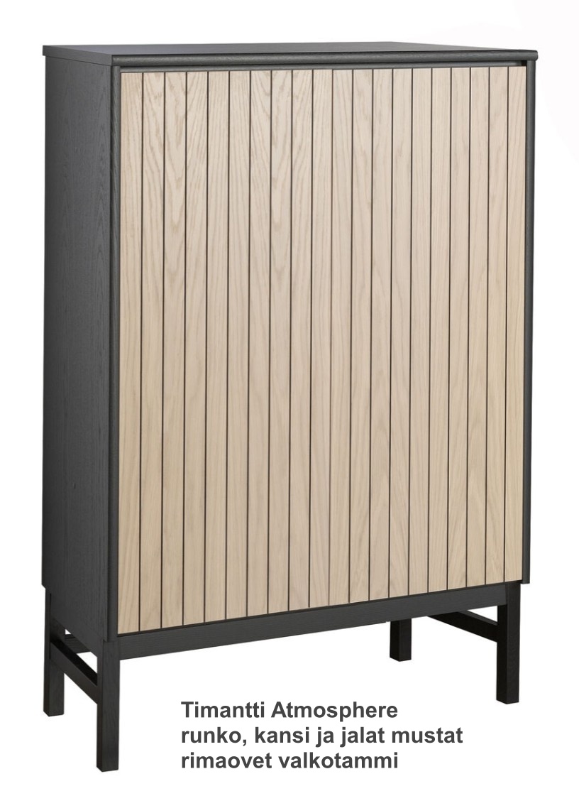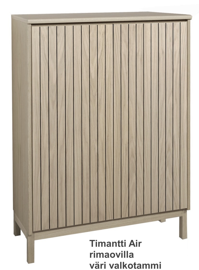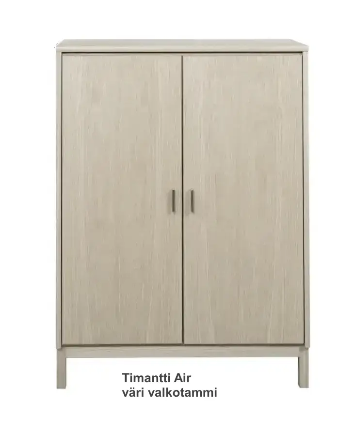 Timantti kaapissa on 4 eri mallia sen mukaan millaiset jalat tai sokkelin valitset; Timantti Classic mallissa on sokkeli joka tulee aina samlla värillä kuin runko vastaavasti timantti Air mallissa on 12 cm korkea puujalat kuin myös Timantti Atmospheressä voit valita jalkojen värin ja näiden korkeiden jalkojen avulla saat tuotteeseen ilmavuutta. Lopuksi halutessasi voi valita Timantti Steel vaihtoehdossa joko mustan tai hopean väriset metallijalat.Timantti kaappi sokkelilla on osa kotimaista, modernia Timantti-kalustesarjaa, joka tunnetaan selkeästä muotokielestään ja kestävästä laadustaan. Kaapin ajaton design ja monipuoliset värivaihtoehdot tekevät siitä helposti yhdisteltävän kodin eri sisustustyyleihin.