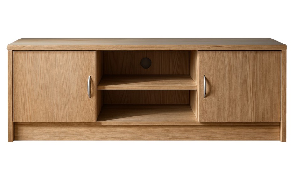 TV-taso on jaettu kolmeen osioon, joista jokaisessa on oma hylly, tarjoten runsaasti tilaa elektroniikalle ja säilytykselle. Ovet ovat valittavissa umpiovina tai vaihtoehtoisesti lasi- tai rimaovilla, ja lisäksi voit räätälöidä kalusteen värit siten, että runko ja kansi ovat samaa tai eri sävyä – myös tyylikäs lasikansi on saatavilla.