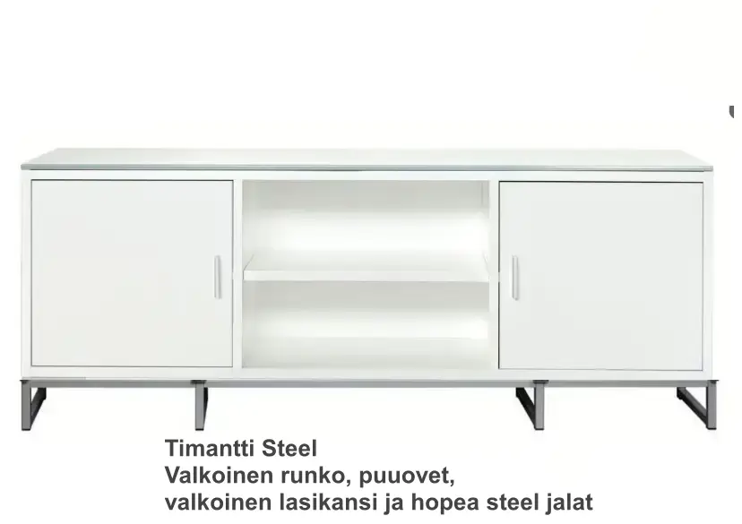 Timantti TV-taso on kotimainen, skandinaavinen ja muunneltava TV-kaluste, joka tarjoaa käytännöllistä säilytystilaa ja yksilöllisiä viimeistelyvaihtoehtoja. Laadukkaat materiaalit, pehmeästi sulkeutuvat ovet ja mahdollisuus valita ovien ja kansien tyyli tekevät siitä pitkäikäisen valinnan olohuoneeseen. Tämä design-TV-taso tuo sisustukseen rauhallista eleganssia ja kestävää laatua.