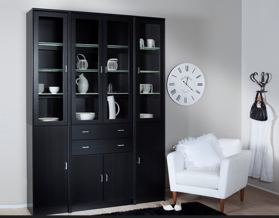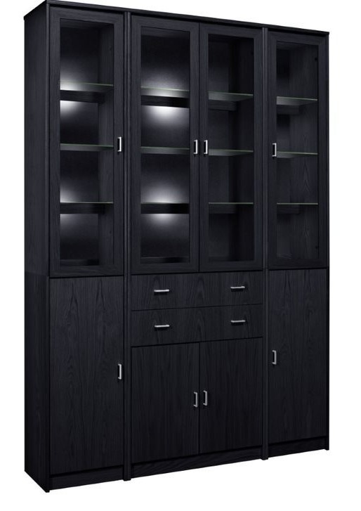 Vitriinissä on keskellä leveä kaappi laatikoilla ja umpiovilla ja reunoilla kapeat kaapit ja ylhäälllä vitriineissä on lasikehysovet. Vitriinin hyllyt saatavava joko lasisena tai puisina. Kokonaisuus on suunniteltu helposti räätälöitäväksi; voit valita vitriinin yhdellä värillä tai yhdistellä rungon, kannen ja oven eri sävyissä sekä halutessasi vaihtaa oven mallin sisustusta korostavaksi vaihtoehdoksi. Näin kaluste mukautuu elämäntilanteen ja tarpeiden muuttuessa.
