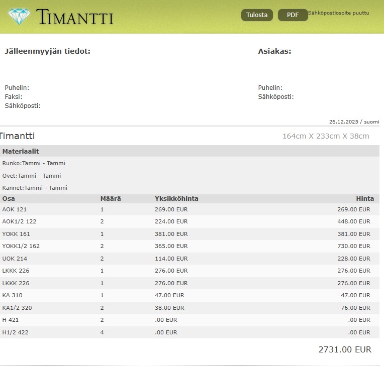 Tilatessasi useampia tuotteita maksat vain 1 toimitusmaksun – lopullisen toimitusmaksun määrittelee tuotteiden määrä ja yhteispaino. Toimitusmaksu samoin kuin mahdolliset lisäpalvelut veloitetaan vasta kassalla. Huomio että juhlapyhät tai kausilomat voivat vaikuttaa toimitusaikaan.