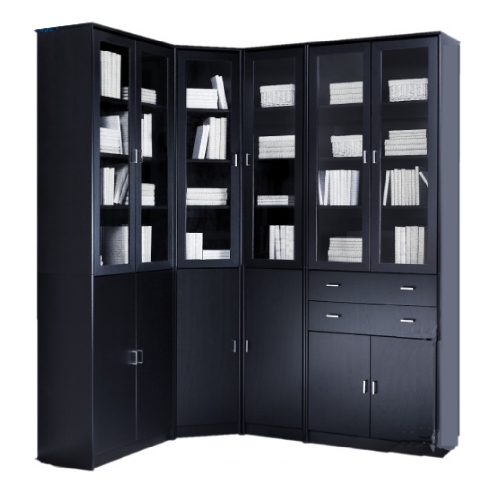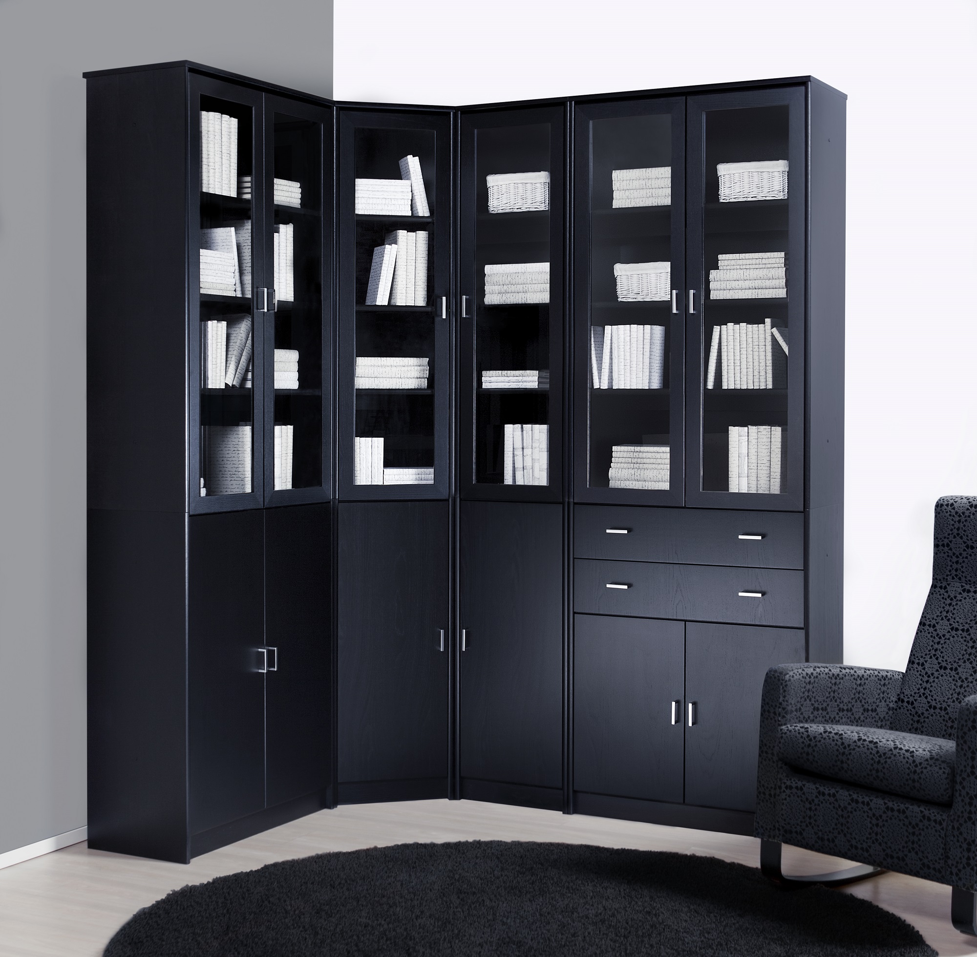Kulmahyllyssä on 4 kaappia joissa on alhaalla umpiovet ja ylhäällä lasikehysovet. Kokonaisuus on suunniteltu helposti räätälöitäväksi; voit valita senkin yhdellä värillä tai yhdistellä rungon, kannen ja oven eri sävyissä sekä halutessasi vaihtaa oven mallin sisustusta korostavaksi vaihtoehdoksi. Näin kaluste mukautuu elämäntilanteen ja tarpeiden muuttuessa.