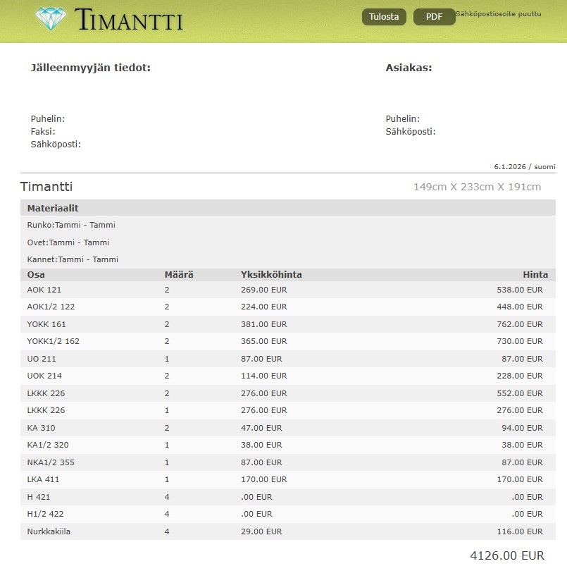 Tilatessasi useampia tuotteita maksat vain 1 toimitusmaksun – lopullisen toimitusmaksun määrittelee tuotteiden määrä ja yhteispaino. Toimitusmaksu samoin kuin mahdolliset lisäpalvelut veloitetaan vasta kassalla. Huomio että juhlapyhät tai kausilomat voivat vaikuttaa toimitusaikaan.