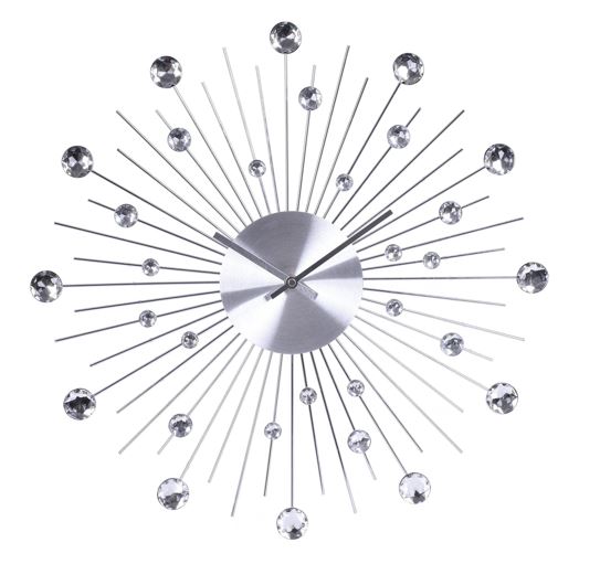 Timantti seinäkello tekee vaikutuksen elegantilla hopeisella viimeistelyllä ja säihkyvillä timanttipalloilla, jotka tuovat tilaan ripauksen glamouria. Sen moderni ja näyttävä ulkonäkö sopii täydellisesti sisustukseen, jossa kaivataan säihkettä ja huomiota herättäviä yksityiskohtia.