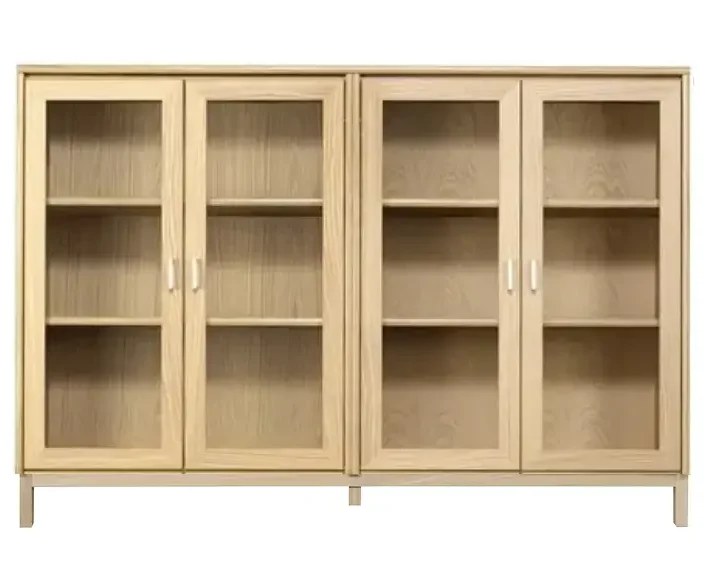 Senkissä on 2 kaappia kussakin 2 lasi hyllyä ja senkissä on lasikehysovet.