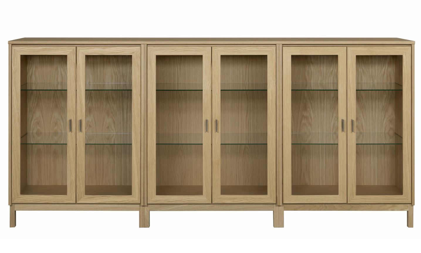 Senkissä on 3 kaappia joissa on lasikehysovet. Kokonaisuus on suunniteltu helposti räätälöitäväksi; voit valita senkin yhdellä värillä tai yhdistellä rungon, kannen ja oven eri sävyissä sekä halutessasi vaihtaa oven mallin sisustusta korostavaksi vaihtoehdoksi. Näin kaluste mukautuu elämäntilanteen ja tarpeiden muuttuessa.