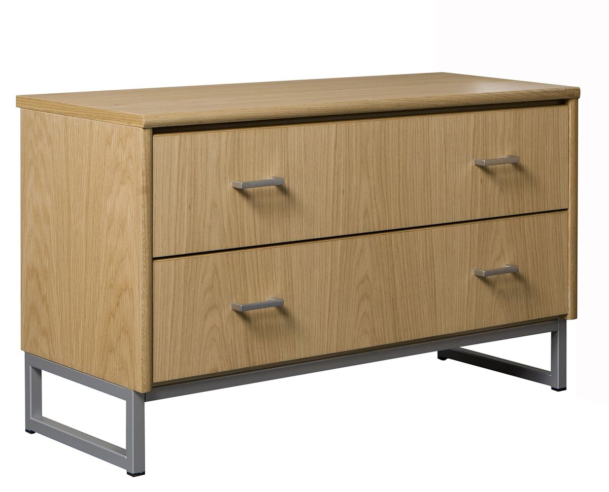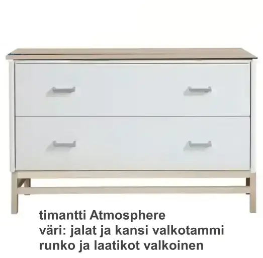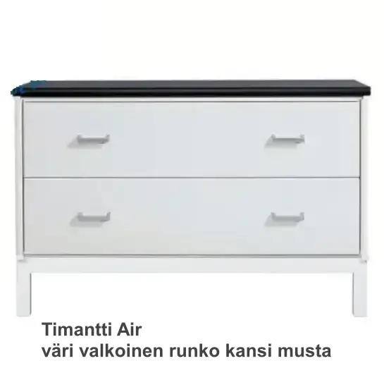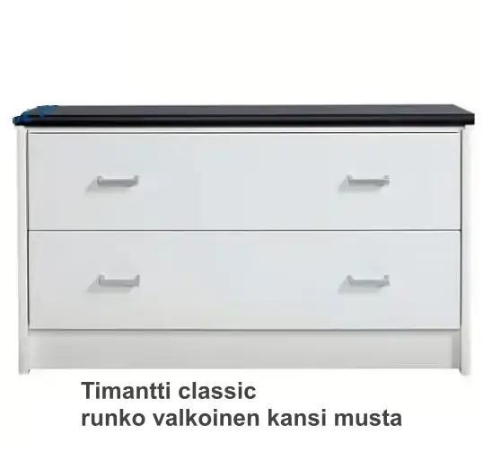 Kaksi tilavaa laatikkoa liukuvat kevyesti metallikiskoilla, ja vetimiksi voit valita joko Vakio M3-, Ferro musta- tai Ferro harmaa -vaihtoehdon. Timantti Steel -jalat ovat saatavana mustana tai harmaana, mikä tekee kokonaisuudesta entistä muunneltavamman eri sisustustyyleihin.