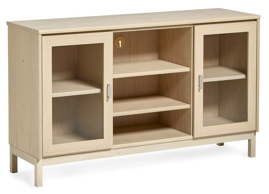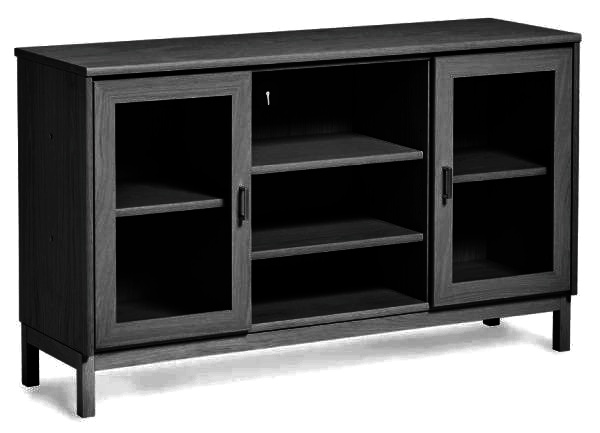 TV-taso on jaettu kolmeen osioon, joista jokaisessa on oma hylly, tarjoten runsaasti tilaa elektroniikalle ja säilytykselle. Ovet ovat valittavissa umpiovina tai vaihtoehtoisesti lasi- tai rimaovilla, ja lisäksi voit räätälöidä kalusteen värit siten, että runko ja kansi ovat samaa tai eri sävyä – myös tyylikäs lasikansi on saatavilla.