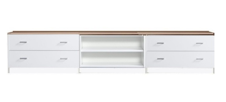 Tasossa on 1 avohylly keskellä ja reunoilla laatikostot. Kokonaisuus on suunniteltu helposti räätälöitäväksi; voit valita senkin yhdellä värillä tai yhdistellä rungon, kannen ja oven eri sävyissä sekä halutessasi vaihtaa oven mallin sisustusta korostavaksi vaihtoehdoksi. Näin kaluste mukautuu elämäntilanteen ja tarpeiden muuttuessa.