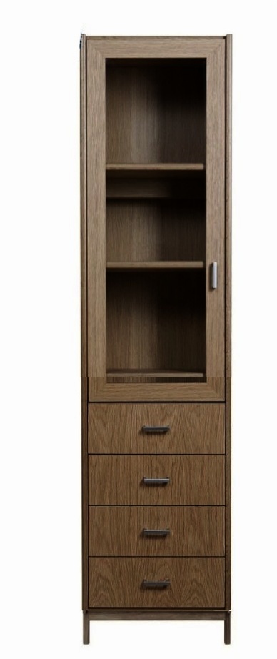 Vitriinissä on alla käytännöllinen laatikosta ja päällä vitriinikaappi hyllyllä ja lasikehysovet. Kokonaisuus on suunniteltu helposti räätälöitäväksi; voit valita vitriinin yhdellä värillä tai yhdistellä rungon, kannen ja oven eri sävyissä sekä halutessasi vaihtaa oven mallin sisustusta korostavaksi vaihtoehdoksi. Näin kaluste mukautuu elämäntilanteen ja tarpeiden muuttuessa.