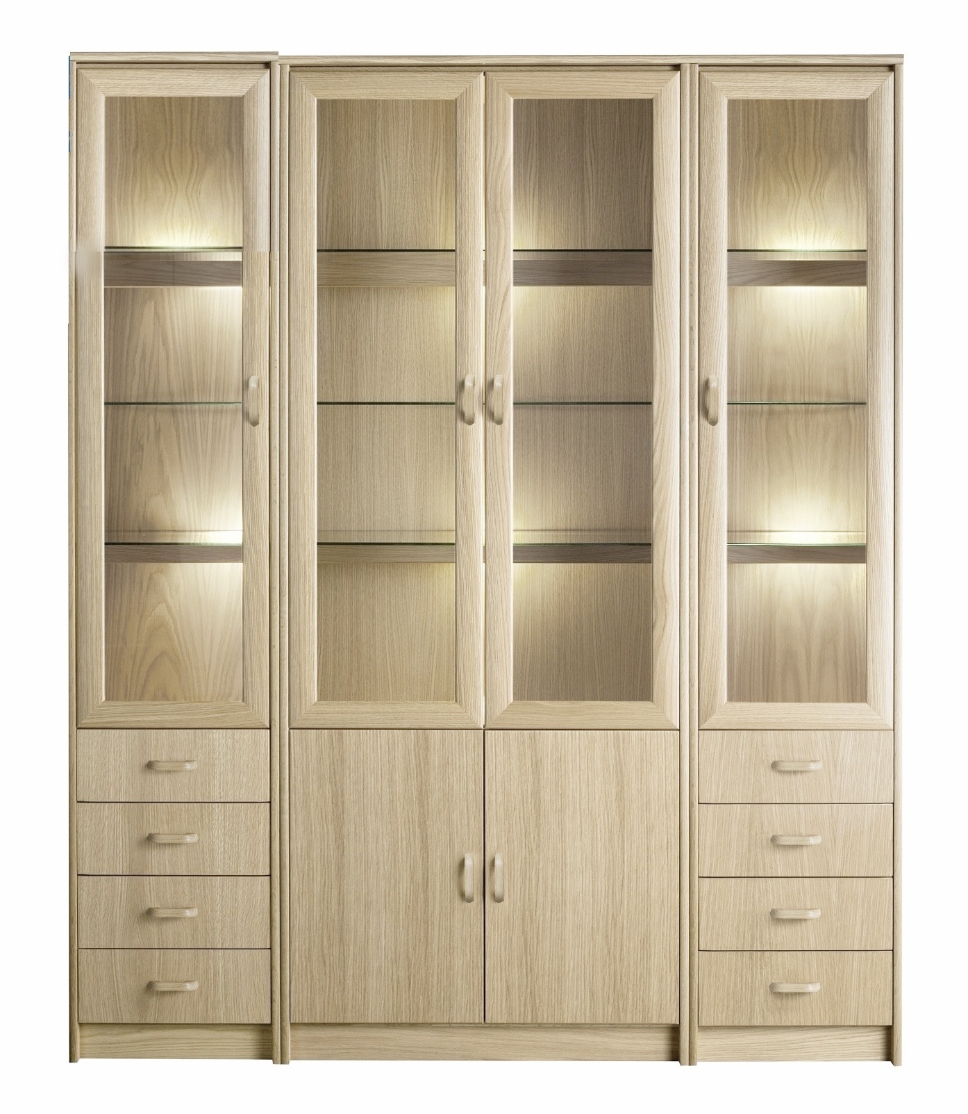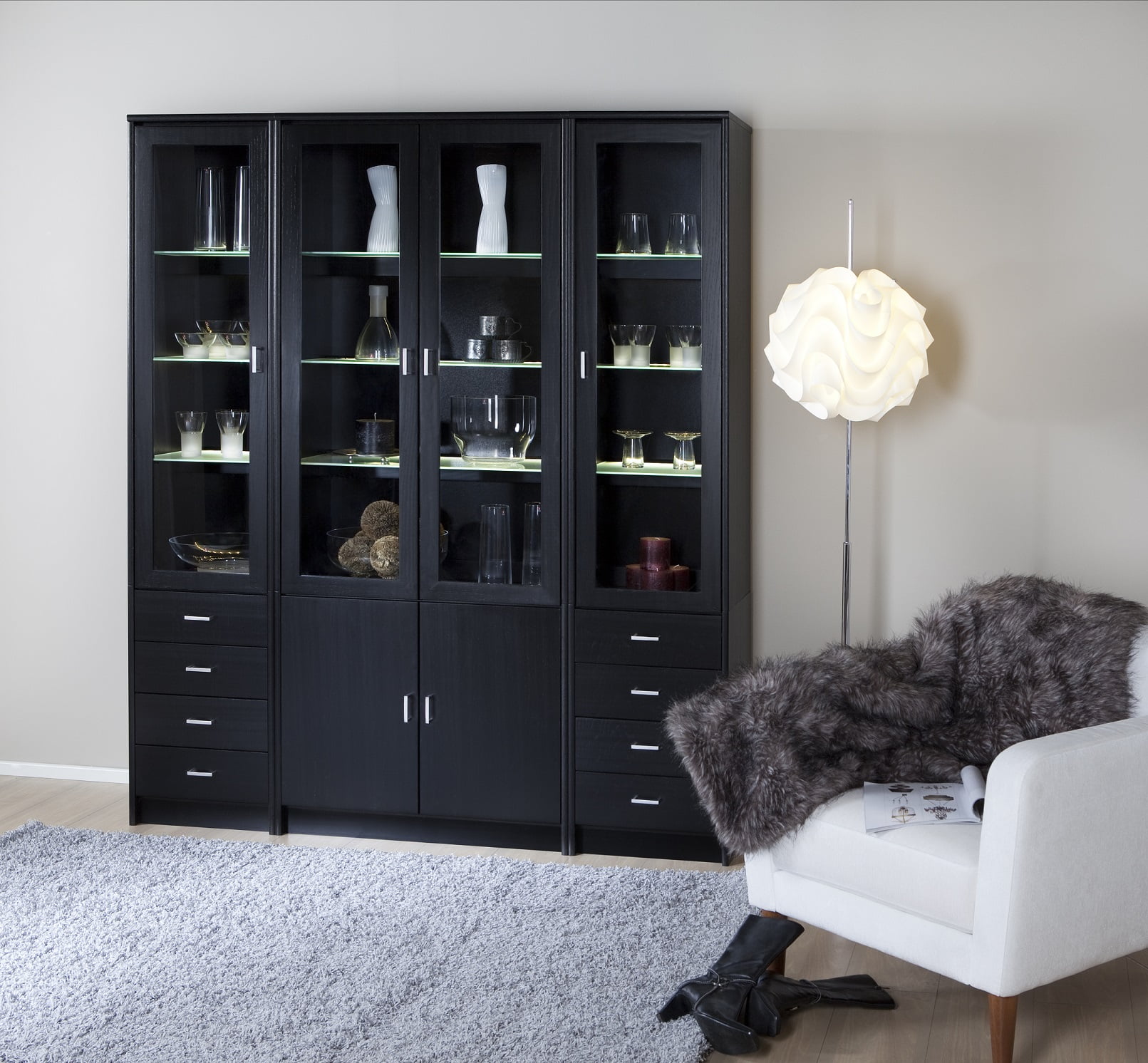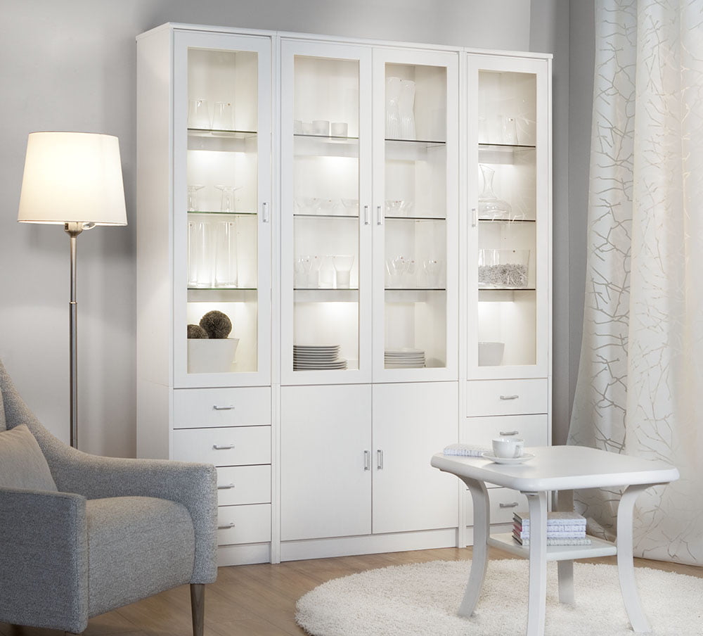 Vitriinissä on keskellä leveä kaappi ja reunoilla kapeat kaapit. keskellä alhaalla puuovet ja sivuilla laatikostot ja ylhäälllä vitriineissä on lasikehysovet. Vitriinin hyllyt saatavava joko lasisena tai puisina. Kokonaisuus on suunniteltu helposti räätälöitäväksi; voit valita vitriinin yhdellä värillä tai yhdistellä rungon, kannen ja oven eri sävyissä sekä halutessasi vaihtaa oven mallin sisustusta korostavaksi vaihtoehdoksi. Lisävarusteena tilattavissa hyllyjen taakse ledvalot joko tehdasasennettuna tai itseasennettavana himmentimellä tai ilman. Näin kaluste mukautuu elämäntilanteen ja tarpeiden muuttuessa.