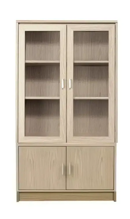 Vitriinissä on alla käytännöllinen kaappi umpiovilla ja päällä vitriini kahdella hyllyllä lasikehysovilla ja kokonaisuus on suunniteltu helposti räätälöitäväksi. Voit valita vitriinin yhdellä värillä tai yhdistellä rungon, kannen ja oven eri sävyissä sekä halutessasi vaihtaa oven mallin sisustusta korostavaksi vaihtoehdoksi. Näin kaluste mukautuu elämäntilanteen ja tarpeiden muuttuessa.