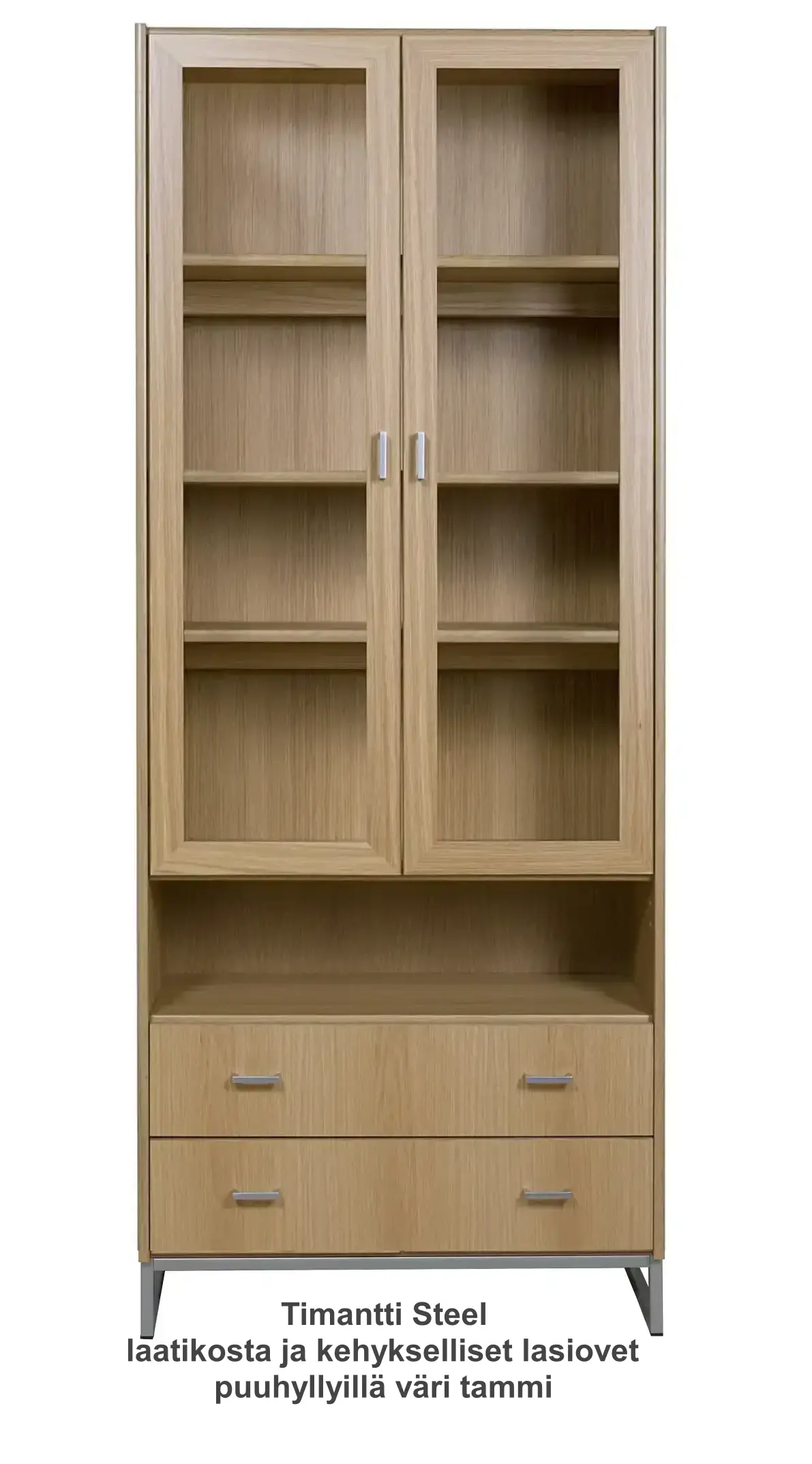 Timantti Vitriini on osa kotimaista Timantti-kalustesarjaa ja edustaa selkeää skandinaavista muotoilua, jossa yhdistyvät harmoninen ulkonäkö ja kestävä estetiikka. Sen rauhallinen ja ajaton ilme sopii vaivattomasti olohuoneeseen, ruokailutilaan tai eteiseen sekä täydentää monenlaisia sisustustyylejä. Vitriinistä on saatavana neljä eri mallia: Timantti Classic sokkelilla, Timantti Air ja Timantti Atmosphere korkeilla puujaloilla sekä Timantti Steel metallijaloilla mustana tai hopeana, mikä mahdollistaa juuri oikean ilmeen valinnan.