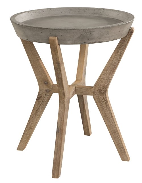 Akaasiapuujalat ja kovera betoninen kansi muodostavat vankan ja modernin rakenteen, joka kestää aikaa ja käyttöä. Harmaa betonipinta yhdistettynä lämpimiin puujalkoihin luo luonnollisen ja elegantin kokonaisuuden.