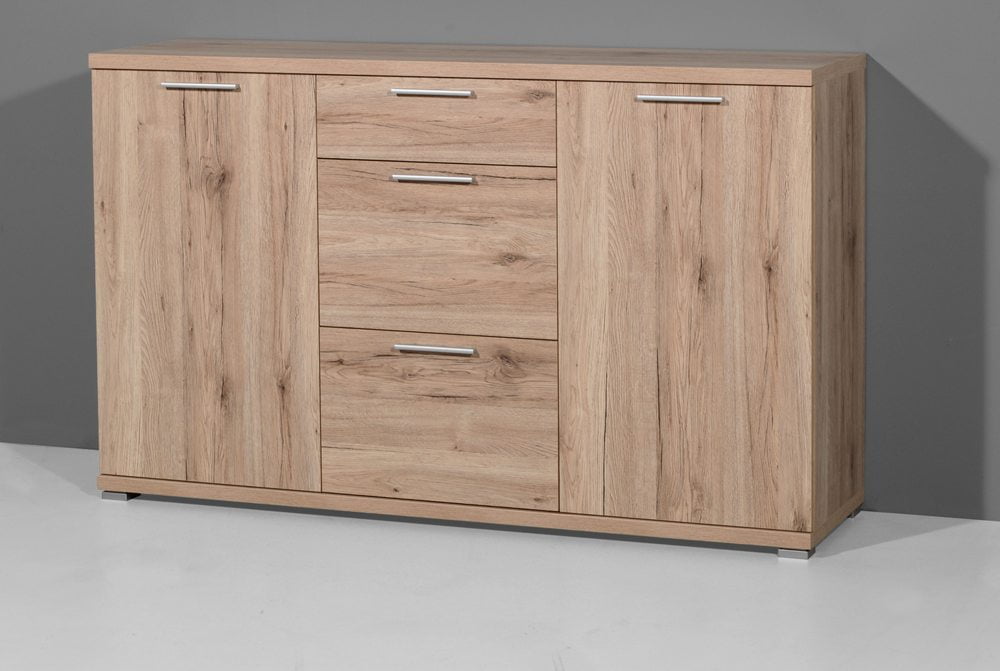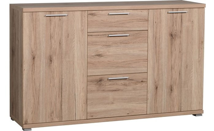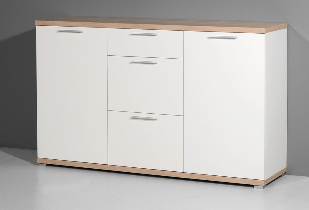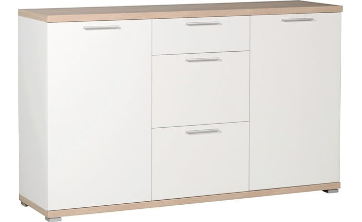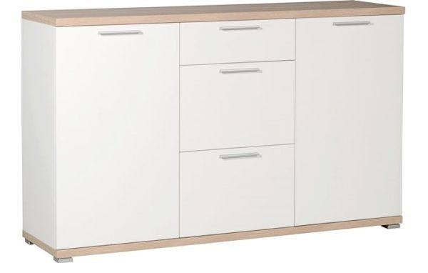 Kaksi ovea, joiden takana on korkeussäädettävät hyllyt, sekä kolme keskellä sijaitsevaa laatikkoa tarjoavat runsaasti monipuolista säilytystilaa. Tämä käytännöllinen rakenne pitää kodin tavarat järjestyksessä ja tekee senkistä toimivan ratkaisun niin olohuoneeseen, eteiseen kuin makuuhuoneeseen.